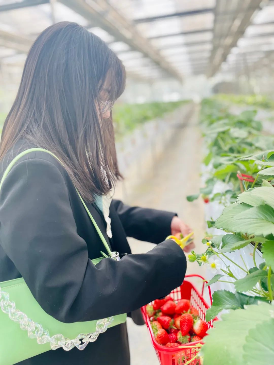 下午兩點(diǎn)大家準(zhǔn)時(shí)到達(dá)草莓園,迫不及待地開啟了采摘之旅,大家進(jìn)入草莓大棚中,呼吸著田園氣息,走進(jìn)大自然的懷抱,心情格外舒暢。大家邊采摘,邊交流,感受采摘的快樂,分享草莓甜蜜的滋味,大棚中笑聲不斷,氣氛熱烈。經(jīng)過一個(gè)多小時(shí)的采摘,每個(gè)人的臉上都掛滿了收獲的喜悅,紛紛拎著自己的勞動(dòng)成果拍照留影。