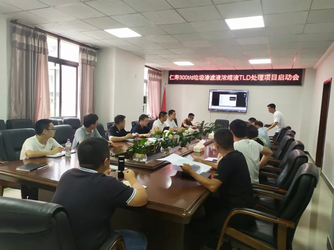 7月7日,碩特環(huán)保副總經(jīng)理黃興俊一行與四川仁壽鑫龍水務(wù)建設(shè)有限公司董事長朱云華及相關(guān)領(lǐng)導(dǎo)在仁壽鑫龍水務(wù)建設(shè)有限公司會(huì)議室召開了“仁壽300t/d垃圾滲濾液濃縮液TLD處理項(xiàng)目啟動(dòng)會(huì)”,會(huì)議就項(xiàng)目的人員分工、前期準(zhǔn)備以及注意事項(xiàng)進(jìn)行了安排部署。