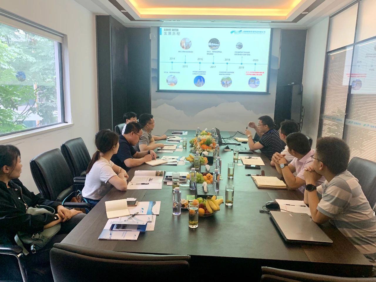 6月9日,成都環(huán)境集團(tuán)再生能源公司總經(jīng)理蘭彭華、生產(chǎn)管理部長趙雙全、滲濾液廠長文靖發(fā)、技術(shù)部和滲濾液廠技術(shù)專家一行到碩特環(huán)??疾旖涣鳌4T特環(huán)保董事長倪金元、副總經(jīng)理黃興俊、技術(shù)研發(fā)副總監(jiān)王亮、胡君杰參與交流接待。